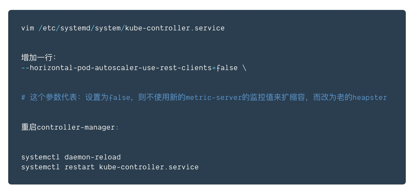 metric-server: 在v1.8版本中引入,官方将其作为heapster的替代者。metric-server依赖于kube-aggregator,因此需要在apiserver中开启相关参数。v1.11中HPA从metric-server获取监控数据